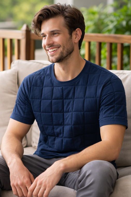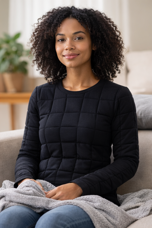 Wearing weighted apparel helps ease stress by providing gentle pressure that mimics a comforting hug.